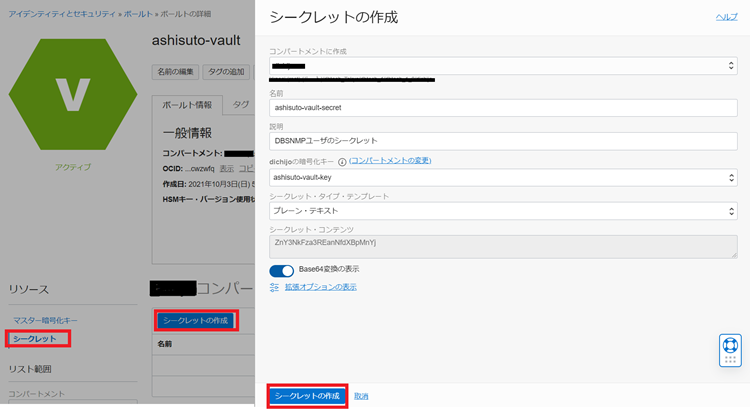 DBSNMPユーザに設定したパスワードをOCI Vaultに保存します。