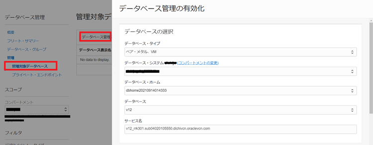 OCI Database Managementがデータベースに接続するために、プライベート・エンドポイントを作成する必要があります。