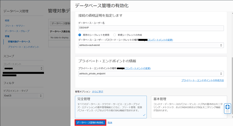 OCI Database Managementの有効化画面で管理オプション「完全管理」と「基本管理」が選択できますが、それぞれ以下の違いがあります。