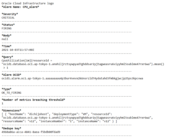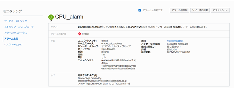 上述の設定では、OCIコンソールにサインインして都度画面を確認する必要がありますが、異常を検知した場合には、できるだけ早く状況を確認する必要があります。