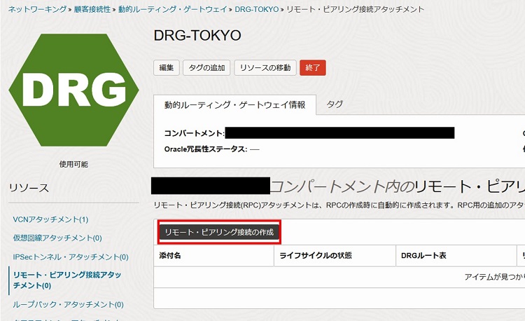 2-3-1-11. それぞれのリージョンのDRGをリモートピアリングします。