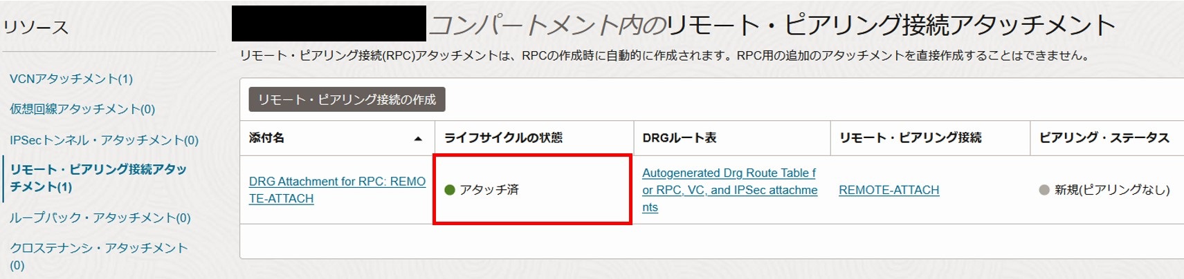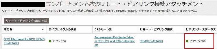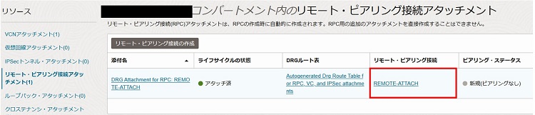 2-3-1-9. リモートピアリング接続用アタッチメントのステータスが「アタッチ済」となったことを確認します。