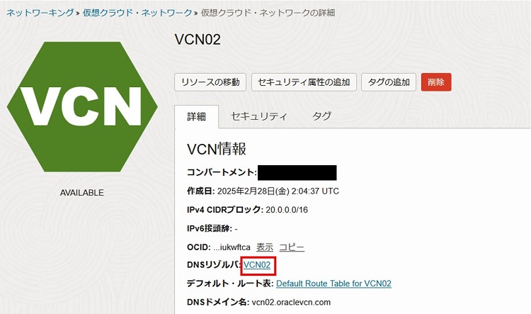 同一VCN内での通信は追加設定せずに名前解決が可能ですが、今回のように別リージョン同士の通信を行うためには、別途レコードの追加等も実施する必要があります。