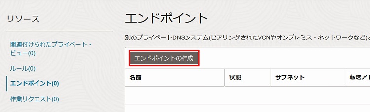 2-3-2-2. エンドポイントリソースから、「エンドポイントの作成」を選択します。