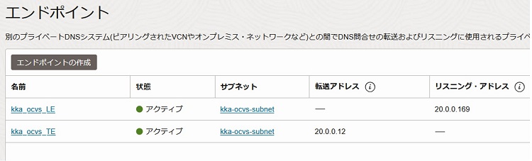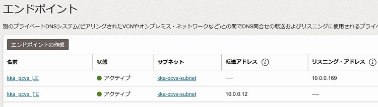 2-3-2-4. 2つのエンドポイントのステータスが「アクティブ」となったことを確認します。