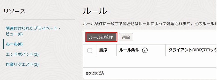 ルールリソースから「ルールの管理」を選択します。