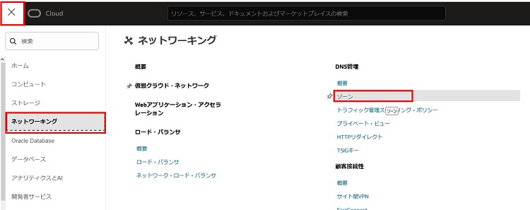 OCI Webコンソールから、左上のメニュー > ネットワーキング > ゾーンへ進みます。