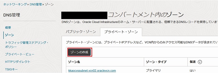 2-3-2-11. プライベート・ゾーンから、「ゾーンの作成」を選択します。