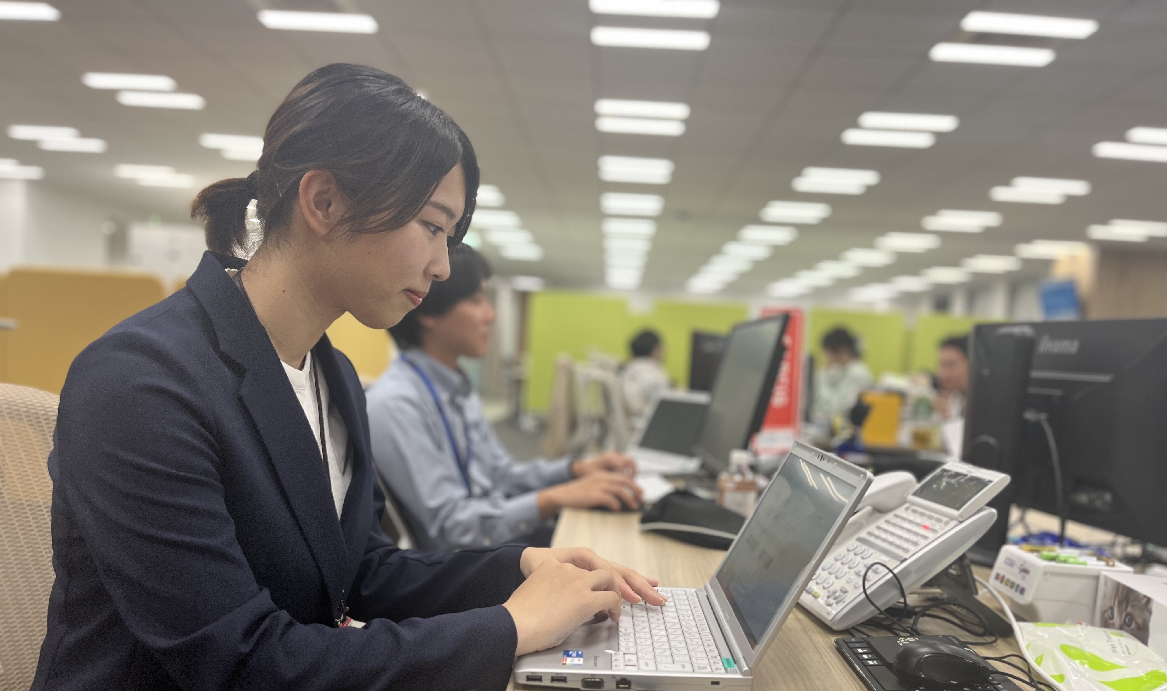 お客様のサポート対応は緊張感がありますが、サポートセンターでは外出が少ないため、オフィスには常に先輩社員が多く、いつでも相談ができる安心した状態で対応が可能です。