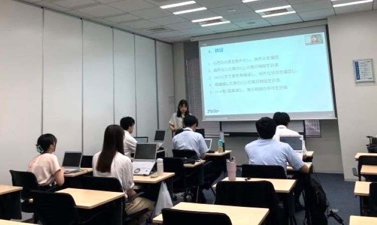 また、ただ講義を受けるだけではなく、各研修の合間に復習の期間が設けられています。復習期間中には、先輩や同期社員に向けてプレゼン発表を行う機会があります。このプレゼン発表準備のためにOracle Databaseを操作することで、より製品知識が身に付く機会となりました。
