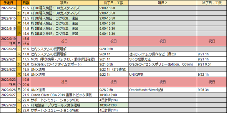 研修のスケジュール感