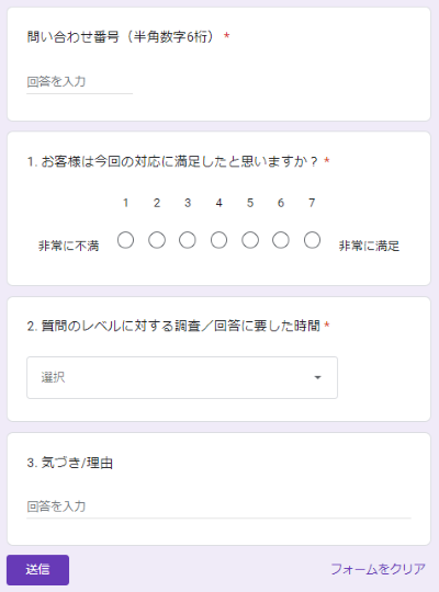 お問い合わせが終了した際は、「自己満足度アンケート」を実施し、自分のサポート対応をお客様目線で評価します。
