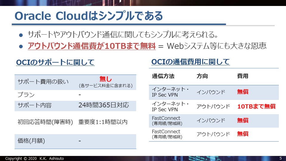 通信費については事前にどれくらいの通信が発生するかを見積もるのが難しいのですが、Oracle Cloudの場合は無償枠が大きいので、安心して使えるという良さもあります。