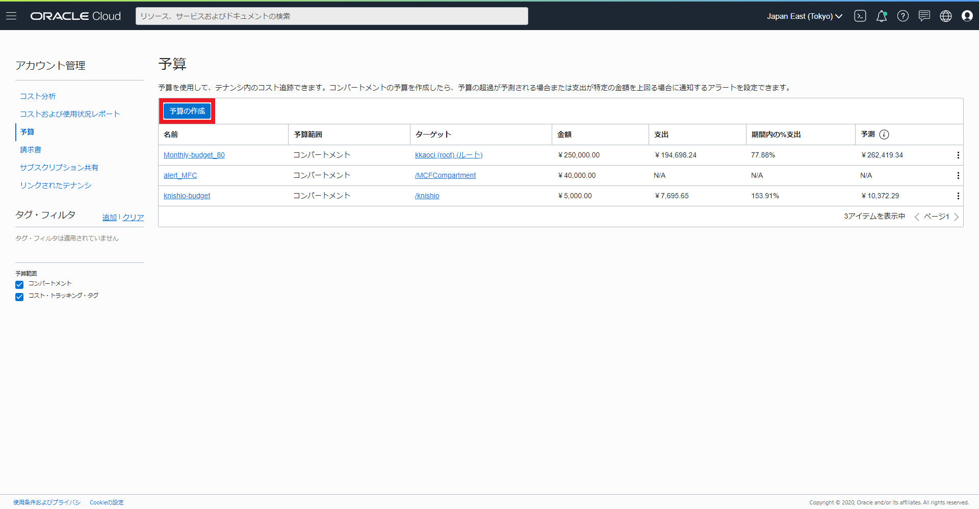 今月分の課金額を確認するには、「コンソールの表示」と「予算」が便利です。