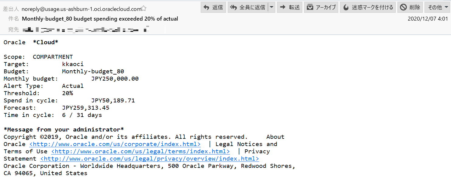 また、予算アラート・ルールでは、課金額によってアラートメールを通知することが可能となります。