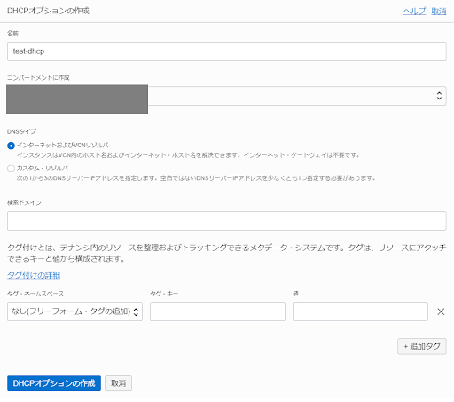 フルリゾルバの設定はVCNの「DHCPオプション」から行えます。