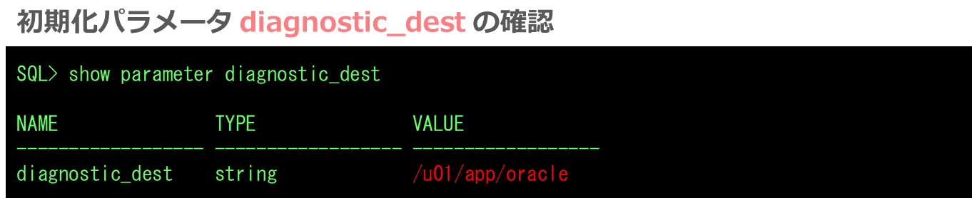 アラートログファイルは、初期化パラメータ「diagnostic_dest」配下にDBごとに出力されます。