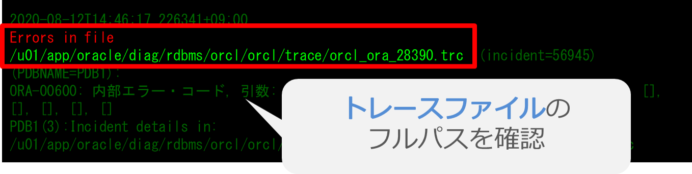 (3)ORA-00600やその他のクリティカルなエラーについてはトレースファイルよりも詳細な診断情報が含まれるインシデントファイルのフルパスを確認する
