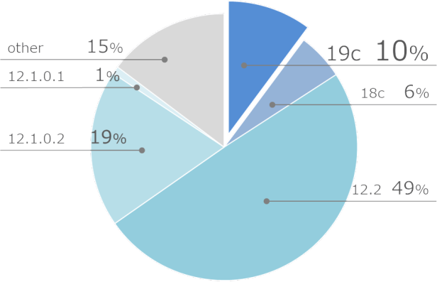 今年、Oracle Databaseに関しアシストのサポートセンターへ寄せられたお問い合わせのバージョン動向をみる限り、お客様が導入されているのは19c未満のバージョンが90%を占め、19cの導入はまだ10%程度というのが現状です。