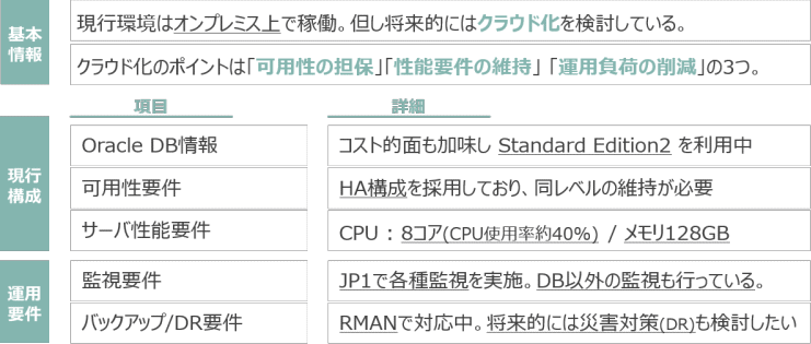 今回は、現状オンプレミス上で実現できている「可用性の担保」「性能要件の維持」「運用負荷の削減」の3点に焦点をあてて見ていきましょう。
