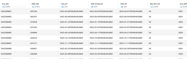 まず、トランザクションテーブルとしてT_SLS_DTLテーブルを用意しました。