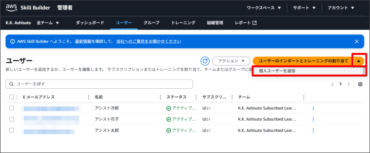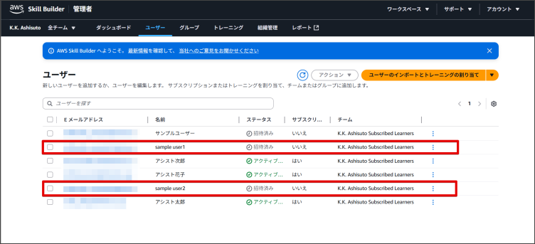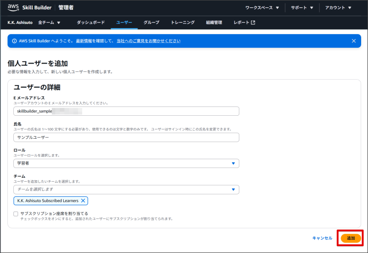 「チームサブスクリプションでユーザー登録された場合のAWS Skill Builderへのアクセス」をご覧ください。