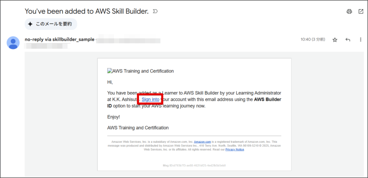 ※作成された各ユーザーには、AWS Skill Builderチームから、以下のメールが届きます。