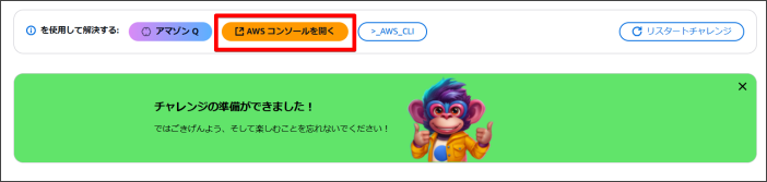「AWSコンソールを開く」ボタンからチャレンジを開始することができます。