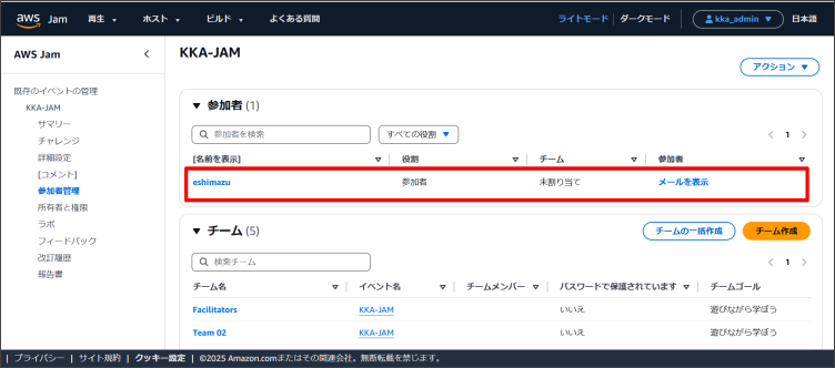 以上、AWS Jamイベントでのチーム事前設定と割り当ての方法についてお伝えしてきました。