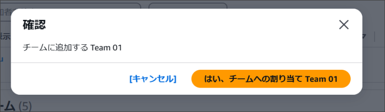 4.確認画面がでてくるため、「はい、チームへの割り当て <チーム名>」をクリックします。