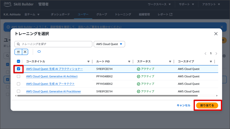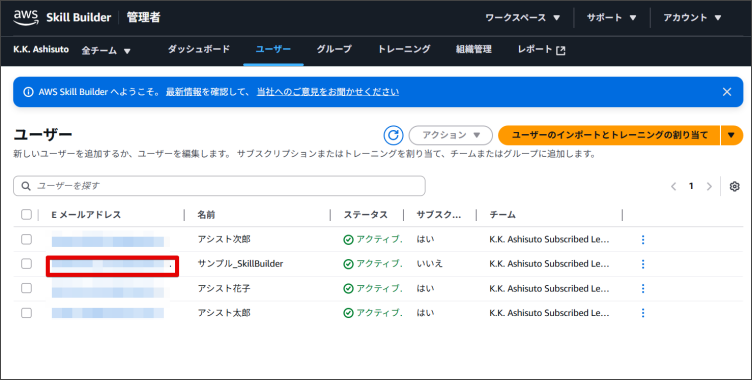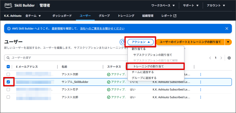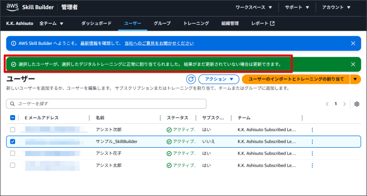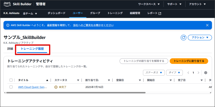 AWS Skill Builderでは、利用者がトレーニングを自身で登録することもできますが、管理者が利用者にトレーニングを登録することも可能です。