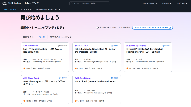 この記事では学習者自身での AWS Skill Builderのトレーニング(コース)登録の方法について紹介します。