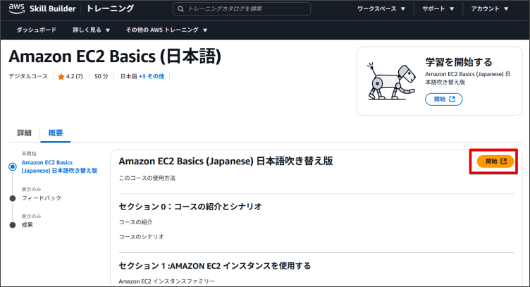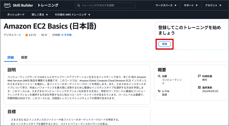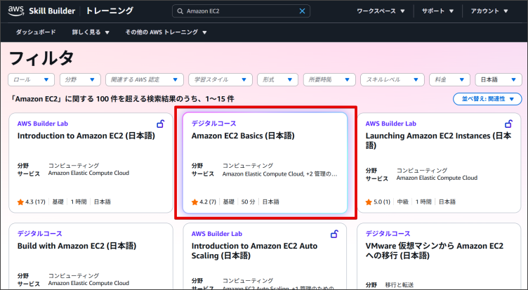 ※本手順では検索窓からAmazon EC2に関連するトレーニングを検索しています