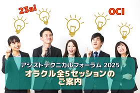 2025年10月に開催される当社最大のテクニカル情報満載のイベント「アシストテクニカルフォーラム 2025」におけるオラクル系セッションをまとめてご紹介します。Oracle Database 23aiやOCIの最新情報が満載です。