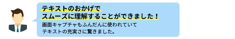 現場ですぐに活用できるオリジナルテキストに高い評価をいただいています。実際の経験に基づき、よく利用する機能や活用方法を中心に説明するので、初めての方から経験者の方までご満足いただけます。