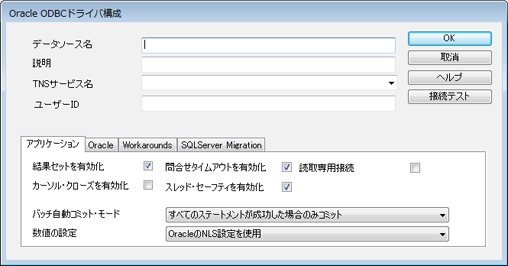 2.Oracle設定画面(画面はOracle ODBC ドライバ v11.01)