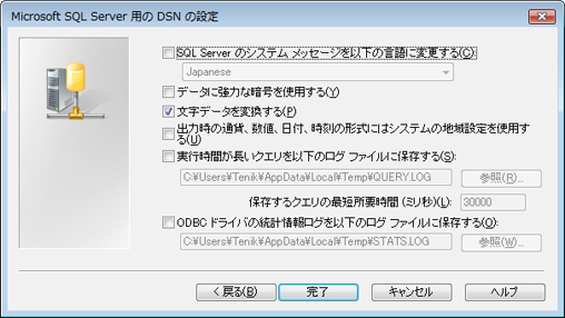 3.SQLServer設定画面(画面はSQLServer ODBC ドライバ v6.00)