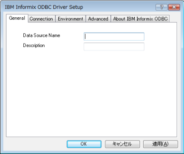 (1)Generalタブを選択し、「Data Source Name」に任意のデータソース名を記入します。 |