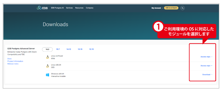 【STEP 2】 EDB Postgres Advanced Server のダウンロード手順