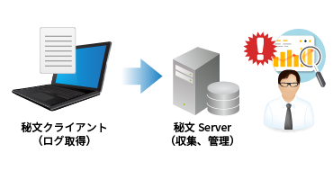 また、クライアントで取得したログを秘文Serverで収集、管理することができます。ユーザが決められたポリシー通りにPCを利用しているかの点検や、有事の際の証跡確認が容易に行えます。