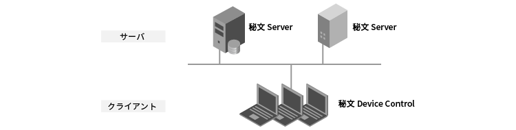 秘文 Device Controlは、基本的にサーバを必要とします。(利用機能によってサーバを必要としないスタンドアロン運用も可能です。)
