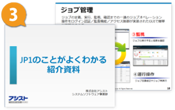 アシストでは、統合運用管理ツール「JP1」についての情報を知りたい方へ、各種資料を無料でプレゼントしています。 製品概要やシステム構成、ライセンスの考え方など、貴社の検討状況に合わせてお気軽にダウンロードしてください。その他の資料請求や各種ご相談は、 こちらからお問い合わせ ください。