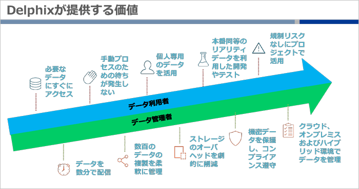 Delphixが提供するソリューションの価値は、こうしたデータ活用の「攻め」と「守り」の両立です。