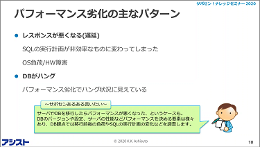 今回は「サポートエンジニアが解説!パフォーマンス劣化の最初の一歩!」と題して、以下をお伝えさせていただきました。