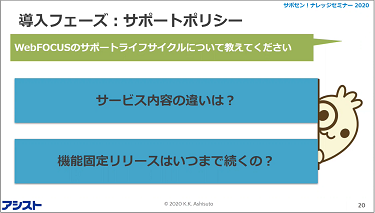 2020年9月17~18日の2日間にわたり、アシストと保守契約を結んでいただいているお客様限定で「サポセン!ナレッジセミナー2020」を開催しました。3回目の開催となる今年はコロナ禍の影響もあり初のウェビナー開催となりました。