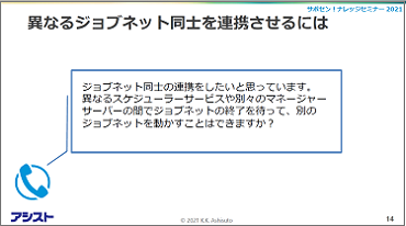 昨年好評だったため、今年もTips系の内容に絞った模擬的なお問い合わせを例にナレッジをご紹介しました。さらに今年はJP1/AJS3(ジョブ)のお問い合わせだけでなく、JP1/IM(統合監視)のTipsも2点ご紹介しました。