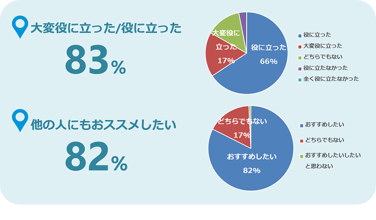 参加されたお客様のアンケート結果の一部をご紹介します。